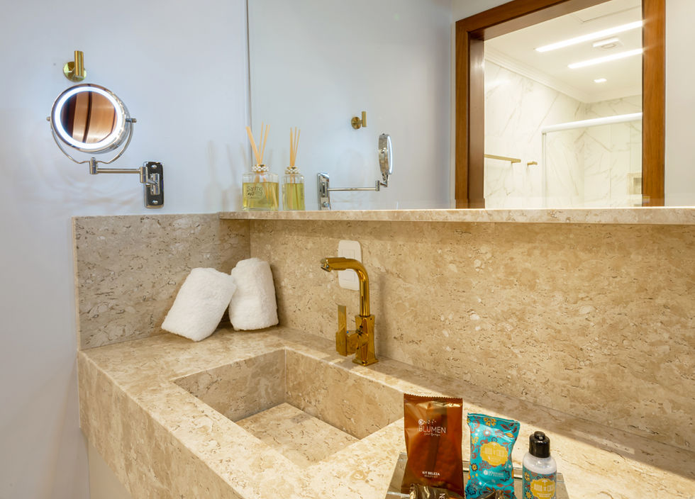 *Todas as nossas suítes ainda possuem enxoval 400 fios, TV por assinatura, espelho iluminado para maquiagem, secador de cabelo profissional, cofre digital, ar condicionado, calefação, toalhas Buddemeyer, balança e menu de travesseiros.